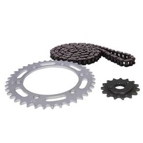 - O kit contém corrente, coroa e pinhão.