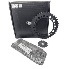 Embalagem: 01 Kit Transmissão Completo. ( Coroa, Pinhão e Corrente )