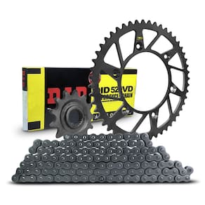 Especificações técnicas: Peso do kit: 2,832kg. Dentes da coroa: 50. Dentes do pinhão: 13. Elos da corrente: 118. Passe da corrente: 520h.