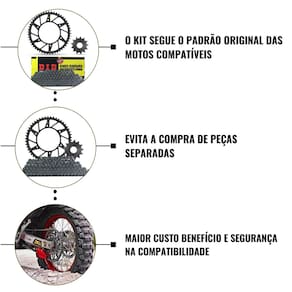 Além disso, este kit segue o padrão de fábrica das motos compatíveis para garantir que não haja improvisos durante a instalação, sendo feito com componentes precisamente calibrados que permitem que você extraia o máximo de desempenho do seu motor sem medo de travamentos ou perda de tração em momentos críticos da pilotagem.