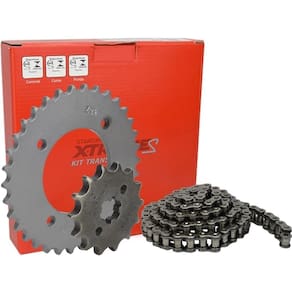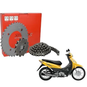 itens inclusos: 01 corrente sem retentor - 01 coroa - 01 pinhão compativel com: biz 125 marca fabricante produto: vaz medidas: coroa 34 dentes - pinhão 14 dentes - corrente 428 sem retentor obs: aço 1045