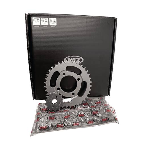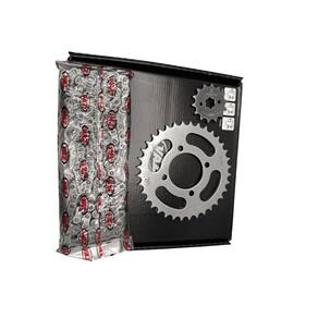 Embalagem: 01 Kit Transmissão Completo. ( Coroa, Pinhão e Corrente )
