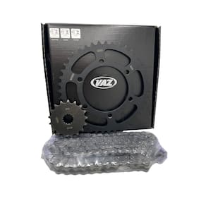 Embalagem: 01 Kit Transmissão Completo. ( Coroa, Pinhão e Corrente )