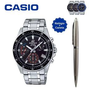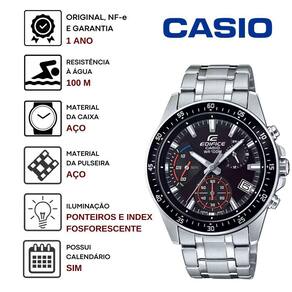 Relógio Casio Edifice Masculino Analógico Prata EFV-540DUm cronógrafo EDIFICE padrão de médio porte Partes da moldura, ponteiros, índices e mostrador interno têm uma coloração azul para criar um design esportivo.EspecificaçõesMaterial da caixa: Aço inoxidávelMaterial da pulseira: Aço inoxidávelUm toque Fecho de 3 dobrasResistente à água a até 100 metrosFonte de alimentação: bateriaDuração aproximada da pilha: 3 anos em SR920SWExteriorVidro mineralPlaca traseira: Trava de roscaRecursos do relógioCronômetro de 1 segundo Capacidade de medição: 959 Modos de medição: tempo decorrido, tempo parcial, tempos do 1º e 2º lugaresPrecisão: ±20 segundos por mêsHorario regular: Analógico: 3 ponteiros (hora, minutos, segundos), 3 mostradores (minutos e segundos do cronômetro, 24 horas)Visor de dataMedidasDiâmetro da caixa: 4,9 × 4,4cmEspessura da caixa: 1,2cmLargura da pulseira: Tamanho da pulseira: Peso do relógio: 144gConteúdo da EmbalagemEstojo da MarcaManual em PortuguêsCertificado de 01 ano junto ao FabricanteNota Fiscal EletrônicaFornecedor: Casio Brasil Comércio Produtos Eletrônicos Ltda. CNPJ:10.172.255/0001-95