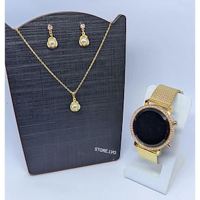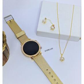 PACOTE INCLUI: 1 - Relógio Digital Led Strass 1 - Colar 1 - Par de Brincos ATENÇÃO: ( Visor do Relógio pode variar azul ou preto de acordo com a disponibilidade ) ATENÇÃO: ( Colar e Brincos enviado aleatório de acordo com a Disponibilidade do estoque )