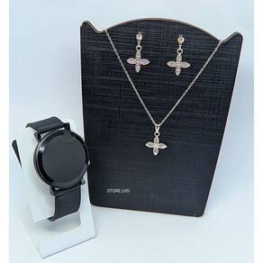 PACOTE INCLUI: 1 - Relógio Digital Led Strass 1 - Colar 1 - Par de Brincos ATENÇÃO: ( Visor do Relógio pode variar azul ou preto de acordo com a disponibilidade ) ATENÇÃO: ( Colar e Brincos enviado aleatório de acordo com a Disponibilidade do estoque )