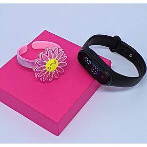 Kit Relógio Digital Led Touch Prova água Menina Esporte + Bracelete Pulseira Infantil 3D desenho animado Presente - Cor: Preto