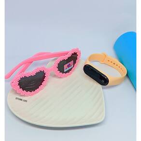 Kit Relógio Digital Meninas Toutch Led Prova água Silicone + Óculos de Sol Coração Menina Flor Florzinha Flexível Moda - Cor: Rose