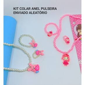 Kit inclui: 1 colar (20 cm), 1 pulseira (6,5 cm) e 1 anel Material: Acrílico e miçangas artesanais em fio de silicone nº 8 Recomendado para crianças a partir de 3 anos Garantia: 1 mês Atenção: modelo e pingentes enviados conforme disponibilidade de estoque