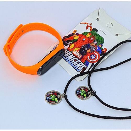 Kit Relógio Infantil Digital Led Menino Esportivo Silicone + Colares Amizade Best Friends com Pingente Desenho animado - Cor: Laranja