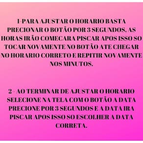 Estilo:Fashion,Social,Casual,Balada,Festa,Dia a Dia , Noite , Fitness , Esportivo, Trabalho , lazer,Para todas as ocasioes .Gênero: masculino, feminino, adulto e infantil Funções especiais: Sistema a cada 12 horas, Visor com função de data Mensal/Diário (Hora/Minuto) Tipo de Visor: Relógio digital com LED Estilo: fashionÀ prova d’água: Sim Tipos de mecanismo: Mandril com Visor de Toque de LED Espessura: 12mmSombreamento do Vidro: Espelho de Vidro Comum Estilo do Botão: FivelaMaterial da Pulseira: Cimento de plásticoForma do visor: quadrado Material da caixa: ABSEspecificação da embalagem: 48x19x12mm Comprimento da mesa: 220mmPeso líquido: 20g