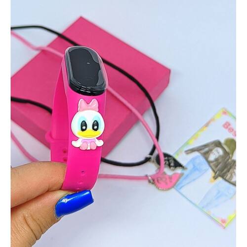 Kit Relógio Infantil Digital Led Silicone Personagens Anime 3D + Colares Amizade Best Friends Menina Menino Presente - Cor: Pato