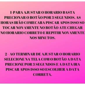 Estilo:Fashion,Social,Casual,Balada,Festa,Dia a Dia , Noite , Fitness , Esportivo, Trabalho , lazer,Para todas as ocasioes. Gênero: masculino, feminino, adulto e infantil Funções especiais: Sistema a cada 12 horas, Visor com função de data Mensal/Diário (Hora/Minuto) Tipo de Visor: Relógio digital com LED Estilo: fashionÀ prova d’água: Sim Tipos de mecanismo: Mandril com Visor de Toque de LED Espessura: 12mm Sombreamento do Vidro: Espelho de Vidro Comum Estilo do Botão: Fivela Material da Pulseira: Cimento de plástico Forma do visor: quadrado Material da caixa: ABS Especificação da embalagem: 48x19x12mm Comprimento da mesa: 220mm Peso líquido: 20g