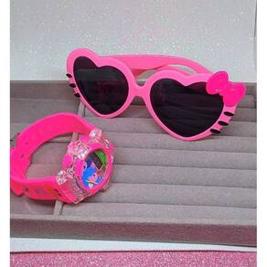 Kit Relógio Infantil Digital Pisca luz Led Colorida Musica Silicone ajustável + Óculos Armação Coração Hello Kitty Moda - Cor: Peppa