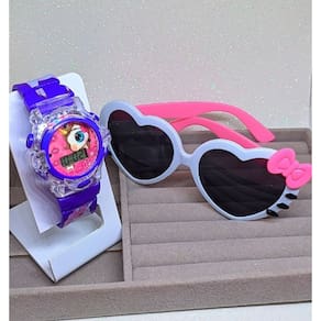 Kit Relógio Infantil Digital Pisca luz Led Colorida Musica Silicone ajustável + Óculos Armação Coração Hello Kitty Moda - Cor: Pony