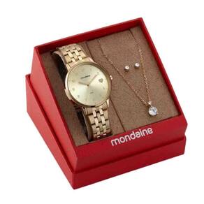 Kit relógio mondaine dourado feminino 32597lpmkde1k1a marca mondaine é uma das mais icônicas no mundo dos relógios, conhecida por seu design minimalista e elegante que conquistou fãs em todo o mundo. Fundada em 1951 na suíça, a mondaine tem uma tradição de mais de 70 anos em produzir relógios de alta qualidade, com precisão suíça e materiais de alta qualidade. A marca ficou famosa por seus relógios inspirados em estações ferroviárias suíças, com o icônico mostrador com fonte clássica e os ponteiros em forma de bastão. Além disso, a mondaine também se destaca por sua preocupação com a sustentabilidade e utiliza materiais reciclados em seus produtos, além de investir em tecnologias eco-friendly. Com uma ampla variedade de modelos, desde os mais clássicos até os mais modernos, a mondaine é a escolha ideal para quem busca elegância e sofisticação em um relógio de alta qualidade.Na elister, a qualidade é uma prioridade em todos os nossos produtos e serviços. Nós nos esforçamos para oferecer aos nossos clientes uma ampla variedade de acessórios, incluindo relógios e óculos de sol, com as melhores marcas e estilos. Nós nos orgulhamos de nossa seleção de produtos, que são escolhidos com atenção aos detalhes e qualidade. Além disso, a nossa equipe é treinada para oferecer um atendimento excepcional, garantindo que cada cliente seja tratado com o respeito e a atenção que merece. É mais que estilo, é elistera semijoia que vai acompanhada do produto pode variar de acordo com a disponibilidade do estoque e não está inclusa na garantia.Especificações técnicas do relógio- marca: mondaine- gênero: feminino- tipo de mostrador: analógico- tipo de fecho: dobrável- cor da caixa: dourado- cor do mostrador: dourado- cor da pulseira: dourado- material da caixa: aço- material da pulseira: aço- largura da caixa: 4,0 cm- espessura da caixa: 9 cm- comprimento do relógio: 21 cm- largura da pulseira: 1,6 cm- resistência à água: 5 atm 50m - garantia: 12 meses
