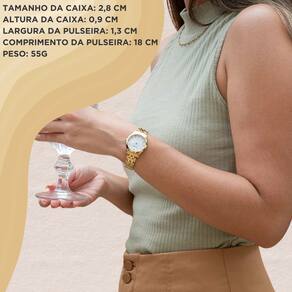 O kit Mondaine 32796LPMKDE1K2 traduz sofisticação e feminilidade em cada detalhe. O relógio dourado apresenta mostrador em madrepérola com numeração completa e acabamento metálico refinado, proporcionando brilho sutil e elegância atemporal. A pulseira em aço inoxidável dourado garante conforto, resistência e harmonia visual. Acompanha uma pulseira com pedras coloridas lapidadas em tons de verde, azul, lilás e rosa, que adiciona um toque moderno e vibrante ao conjunto. Ideal para mulheres que valorizam estilo e versatilidade, o kit é perfeito tanto para o dia a dia quanto para ocasiões especiais. Com resistência à água de até 5 ATM, une beleza, praticidade e durabilidade — uma expressão refinada do design Mondaine.