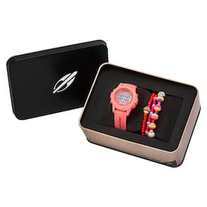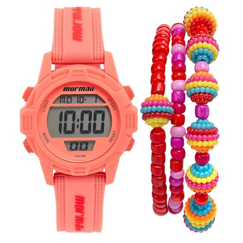Esse relógio da linha Infantil traz um novo modelo, com caixa super diferenciada rosa e pulseira na mesma cor com a logo da marca em alto relevo. Ele vem com caixa de polímero de 37,5mm e pulseira de silicone, para o máximo conforto dos pequenos, e possui funções como calendário, cronógrafo, alarme e luz noturna. Seu maquinismo digital facilita a leitura das horas e com sua resistência à água de 100 metros, eles começam a abraçar o estilo de vida Mormaii desde pequenos