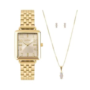 Estamos há mais de 50 anos no mercado oferecendo uma ampla variedade de acessórios, incluindo relógios e óculos de sol, com as melhores marcas e estilos. Além disso, a nossa equipe é treinada para oferecer um atendimento excepcional, garantindo que cada cliente seja tratado com o respeito e a atenção que merece.Realizando a compra, não deixe de nos avaliar Sua opinião é muito importante para aperfeiçoar cada vez mais o nosso trabalho.A semijoia pode variar de acordo com a disponibilidade do e não está inclusa na . ESPECIFICAÇÕES TÉCNICAS- Marca: Condor - Referência: CO2035NJN/4K- Gênero: Feminino- Tipo de mostrador: Analógico- Tipo de movimento: Quartz - Tipo de fecho: Fivela de liberação- Cor da caixa: Dourado- Cor do mostrador: Champagne- Cor da pulseira: Dourado- Material da caixa: Metal- Comprimento do relógio:22 cm- Resistência à água: 3 ATM- : 12 meses Marca: Não Informado