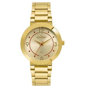 Modelo: COPC21AEDC/4D Marca: Condor Tipo de mostrador: Analógico Mecanismo: Quartzo Alimentação: Bateria Formato da Caixa: Redondo Cor do mostrador: Dourado com Index Vermelho Cor da caixa: Dourado cor da pulseira: Dourado Material do Vidro: Cristal Mineral Material da caixa: Metal Material da pulseira: Aço Inox Tipo de Fecho: Dobrável com 2 botões Nível de Resistência à Água: 30m Calendário: Não Cronômetro: Não Alarme: Não Luz noturna: Não
