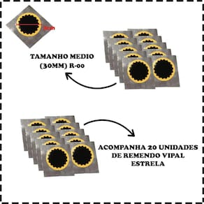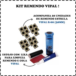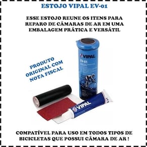 - Enfrente qualquer imprevisto na sua pedalada com o KIT REPARO Vipal EV-01 - Compacto e eficiente, ele garante soluções rápidas e práticas para câmaras de ar, mantendo você sempre em movimento - Especificações: O estojo contém 1 tira de reparo R V-02 - 300 x 75 mm; 1 bisnaga de adesivo CB-01 - 15 g; 1 lixa para limpeza de - 68 x 37 mm. 20 - Remendo estrela de 30 mm - Compre com tranquilidade Nós garantimos a qualidade excepcional do nosso produto e oferecemos total . - Sua satisfação é nossa prioridade. Marca: Não Informado