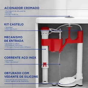 Um mecanismo antigo se desgasta e apresenta falhas em seu funcionamento, causando problemas recorrentes como descargas incompletas, entupimentos e vazamentos desagradáveis, resultando na necessidade de constantes reparos. Ao trocar para um novo mecanismo de caixa acoplada, você garantirá um desempenho aprimorado, com descargas eficientes, rápidas e completas. Diga adeus às preocupações com o mau funcionamento do seu vaso sanitário!