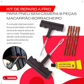 Kit Reparo de Pneus Furado Macarrão para Carro e Moto sem Câmara