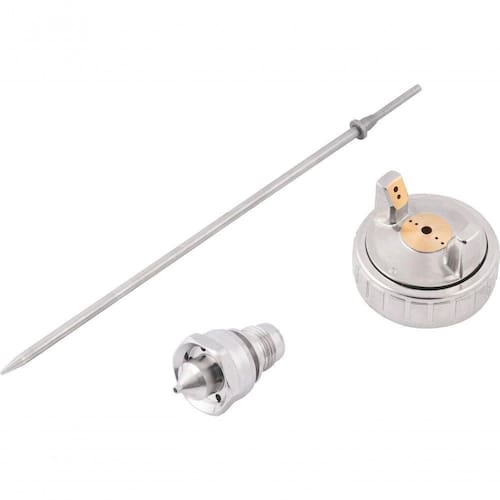 1 Agulha de 1,3 mm, 1 bico de 1,3 mm, 1 capa de ar, 1 porca da capa de ar, 1 anel de vedação da capa de ar e 1 anel de vedação da porca.