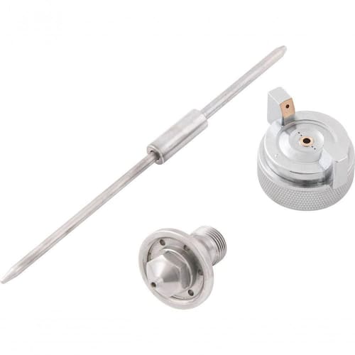 1 Agulha de 1,4 mm, 1 guia da agulha, 1 núcleo da mola, ( já montados) 1 capa de ar, 1 porca do bico, 1 anel da capa de ar, 1 porca da capa de ar (já montados) e 1 bico de 1,4 mm.