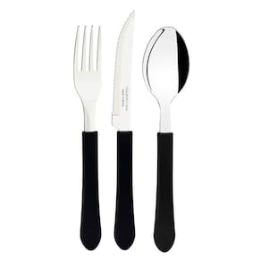 Kit restaurante 18 talheres tramontina 6 garfos + 6 facas + 6 colheres ========== sobre o produto ========== O kit restaurante 6 garfos + 6 facas + 6 colheres tramontina é ideal para quem deseja elevar a qualidade e a apresentação de suas refeições. Composto por 6 garfos, 6 facas e 6 colheres, este conjunto é perfeito para compor sua mesa com elegância e praticidade. Feitos de aço inoxidável de alta durabilidade, os talheres oferecem resistência à corrosão e um desempenho superior. O design ergonômico e moderno dos cabos proporciona um manuseio confortável, tornando este kit uma excelente escolha para uso doméstico ou profissional. ========== especificações ========== Conjunto composto por 6 garfos, 6 facas e 6 colheres. Cabos ergonômicos para um manuseio confortável. Design moderno e elegante, ideal para qualquer ocasião. ========== ficha técnica ========== Unidades: 6 garfos / 6 facas / 6 colheres Comprimento dos garfos: 18,5cm Comprimento dos colheres: 18,5cm Comprimento das facas: 23 cm Material: aço inoxidável e polipropileno Marca: tramontina : 3 meses Estamos online para quaisquer dúvidas, Agradecemos e aguardamos o seu pedido. P: os talheres são resistentes à corrosão R: sim, todos os talheres são feitos de aço inoxidável, o que garante alta resistência à corrosão e durabilidade. P: o kit pode ser lavado na máquina de lavar louça R: sim, todos os talheres do kit podem ser lavados na máquina de lavar louça, mas recomendamos lavar à mão para prolongar a vida útil dos cabos. P: o kit é adequado para R: sim, o kit é ideal tanto para uso doméstico quanto profissional, oferecendo qualidade e durabilidade para diversas situações. P: o produto é novo ou Marca: Não Informado