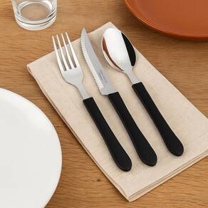 Kit restaurante 18 talheres tramontina 6 garfos + 6 facas + 6 colheres ========== sobre o produto ========== O kit restaurante 6 garfos + 6 facas + 6 colheres tramontina é ideal para quem deseja elevar a qualidade e a apresentação de suas refeições. Composto por 6 garfos, 6 facas e 6 colheres, este conjunto é perfeito para compor sua mesa com elegância e praticidade. Feitos de aço inoxidável de alta durabilidade, os talheres oferecem resistência à corrosão e um desempenho superior. O design ergonômico e moderno dos cabos proporciona um manuseio confortável, tornando este kit uma excelente escolha para uso doméstico ou profissional. ========== especificações ========== Conjunto composto por 6 garfos, 6 facas e 6 colheres. Cabos ergonômicos para um manuseio confortável. Design moderno e elegante, ideal para qualquer ocasião. ========== ficha técnica ========== Unidades: 6 garfos / 6 facas / 6 colheres Comprimento dos garfos: 18,5cm Comprimento dos colheres: 18,5cm Comprimento das facas: 23 cm Material: aço inoxidável e polipropileno Marca: tramontina : 3 meses Estamos online para quaisquer dúvidas, Agradecemos e aguardamos o seu pedido. P: os talheres são resistentes à corrosão R: sim, todos os talheres são feitos de aço inoxidável, o que garante alta resistência à corrosão e durabilidade. P: o kit pode ser lavado na máquina de lavar louça R: sim, todos os talheres do kit podem ser lavados na máquina de lavar louça, mas recomendamos lavar à mão para prolongar a vida útil dos cabos. P: o kit é adequado para R: sim, o kit é ideal tanto para uso doméstico quanto profissional, oferecendo qualidade e durabilidade para diversas situações. P: o produto é novo ou Marca: Não Informado Ean: 7903977245128