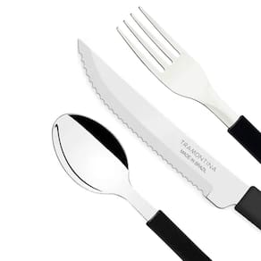 Kit restaurante 18 talheres tramontina 6 garfos + 6 facas + 6 colheres ========== sobre o produto ========== O kit restaurante 6 garfos + 6 facas + 6 colheres tramontina é ideal para quem deseja elevar a qualidade e a apresentação de suas refeições. Composto por 6 garfos, 6 facas e 6 colheres, este conjunto é perfeito para compor sua mesa com elegância e praticidade. Feitos de aço inoxidável de alta durabilidade, os talheres oferecem resistência à corrosão e um desempenho superior. O design ergonômico e moderno dos cabos proporciona um manuseio confortável, tornando este kit uma excelente escolha para uso doméstico ou profissional. ========== especificações ========== Conjunto composto por 6 garfos, 6 facas e 6 colheres. Cabos ergonômicos para um manuseio confortável. Design moderno e elegante, ideal para qualquer ocasião. ========== ficha técnica ========== Unidades: 6 garfos / 6 facas / 6 colheres Comprimento dos garfos: 18,5cm Comprimento dos colheres: 18,5cm Comprimento das facas: 23 cm Material: aço inoxidável e polipropileno Marca: tramontina : 3 meses Estamos online para quaisquer dúvidas, Agradecemos e aguardamos o seu pedido. P: os talheres são resistentes à corrosão R: sim, todos os talheres são feitos de aço inoxidável, o que garante alta resistência à corrosão e durabilidade. P: o kit pode ser lavado na máquina de lavar louça R: sim, todos os talheres do kit podem ser lavados na máquina de lavar louça, mas recomendamos lavar à mão para prolongar a vida útil dos cabos. P: o kit é adequado para R: sim, o kit é ideal tanto para uso doméstico quanto profissional, oferecendo qualidade e durabilidade para diversas situações. P: o produto é novo ou Marca: Não Informado