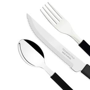 Kit restaurante 18 talheres tramontina 6 garfos + 6 facas + 6 colheres ========== sobre o produto ========== O kit restaurante 6 garfos + 6 facas + 6 colheres tramontina é ideal para quem deseja elevar a qualidade e a apresentação de suas refeições. Composto por 6 garfos, 6 facas e 6 colheres, este conjunto é perfeito para compor sua mesa com elegância e praticidade. Feitos de aço inoxidável de alta durabilidade, os talheres oferecem resistência à corrosão e um desempenho superior. O design ergonômico e moderno dos cabos proporciona um manuseio confortável, tornando este kit uma excelente escolha para uso doméstico ou profissional. ========== especificações ========== Conjunto composto por 6 garfos, 6 facas e 6 colheres. Cabos ergonômicos para um manuseio confortável. Design moderno e elegante, ideal para qualquer ocasião. ========== ficha técnica ========== Unidades: 6 garfos / 6 facas / 6 colheres Comprimento dos garfos: 18,5cm Comprimento dos colheres: 18,5cm Comprimento das facas: 23 cm Material: aço inoxidável e polipropileno Marca: tramontina : 3 meses Estamos online para quaisquer dúvidas, Agradecemos e aguardamos o seu pedido. P: os talheres são resistentes à corrosão R: sim, todos os talheres são feitos de aço inoxidável, o que garante alta resistência à corrosão e durabilidade. P: o kit pode ser lavado na máquina de lavar louça R: sim, todos os talheres do kit podem ser lavados na máquina de lavar louça, mas recomendamos lavar à mão para prolongar a vida útil dos cabos. P: o kit é adequado para R: sim, o kit é ideal tanto para uso doméstico quanto profissional, oferecendo qualidade e durabilidade para diversas situações. P: o produto é novo ou Marca: Não Informado