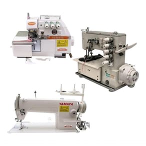 CONJUNTO COM 3 MÁQUINAS DE COSTURA: 1- RETA YAMATA, 1-OVERLOCK YAMATA 1 GALONEIRA BRACOB ESPECIFICAÇÕES DA RETA YAMATA MODELO FY8700 Velocidade de 4500 pontos por minuto Comprimento máximo do ponto de 5 milímetros Altura do calcador manual de 6 mm e na joelheira de 13 mm. Enchedor de bobina acoplado a máquina Lubrificação automática Lançadeira pequena. Máquina de costura tipo Ponto Fixo. ESPECIFICAÇÕES DA OVERLOCK YAMATA MODELO FY33 Lubrificação automática; Passagem de linha identificada através de cores gravadas internamente; Visor do nível e fluxo do óleo; Altura do calcador até 13 mm Tamanho máximo do ponto 0 - 5 mm Tipo de agulha DCX27 Velocidade 5000 PPM Voltagem: Bivolt 1 agulha 3 Linhas ESPECIFICAÇÕES DA GALONEIRA BRACOB MODELO BC5000D 3 agulhas 5 fios Largura da costura = 6,35mm Altura calcador = 6mm Tipo agulha B63 Comprimento máximo do ponto = 4mm Lubrificação automática Rotação máxima = 3000 RPM Motor Direct drive (motor acoplado internamente na máquina) Potência = 550w Envio por Transportadora Montagem por conta do Cliente