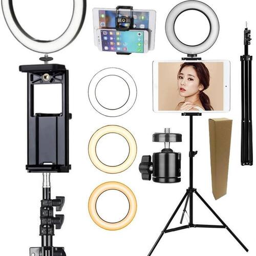 Kit ring light luz led anel iluminador tripé suporte apoio encaixe para tablet celular universal foto vídeo selfie lacrado em sua embalagem . Kit tripé 2 metros + suporte para tablet celular + ring light led usb Equipamento muito versátil para estúdios, home office, maquiadores, tiktokers e produtores de conteudo em geral... Suporte diversos equipamentos nos mais variados ambientes Tripé com ajuste de altura até 2,10 metros Acompanha ring light de led com 3 modos de cores frio, quente e neutro e 10 níveis de intensidade de iluminação Suporte adaptador 2 em 1 para celular tablet Iluminador ring light de 16 centímetros 6,5 polegadas , desenvolvido para maquiadores, fotógrafos, cinegrafistas, youtubers e etc, que buscam uma ótima maneira de iluminar com perfeição. O encaixe do ring ligth é através de encaixe padrão de tripés de rosca. O mini tripé também serve para utilizar em outros equipamentos de até 1kg de peso, como projetores, celulares e etc. É recomendado e extremamente eficaz para a macro fotografia, fotografia médica, odontológica, científica, hobby e para a iluminação/fotografia de produções de maquiadores. A alimentação do iluminador é através de cabo usb não acompanha adaptador de tomada e não possui bateria interna recarregável , você pode utilizar um adaptador de tomada de celular para ligar ou conectar no usb do computador ou outro equipamento que forneça 5v usb. O cabo usb deverá estar sempre ligado para funcionar. Tripé robusto de alta qualidade, possui molas internas para amortecimento, braçadeiras reforçadas em nylon, altura de 2,10 mts, abertura dos pés de 88 cm promovendo boa estabilidade, pino 5/8 com rosca 1/4 para usar diversos tipos de equipamentos. Pintura preta, tornando - o mais discreto no ambiente de cine & foto. Reforçado, chegando a suportar 6 kg , pode ser Utilizado com diversos equipamentos de iluminação. acompanha suporte para celular e tablet . Além disso este tripé é um modelo muito recomendado para utilização junto a equipamentos fotográficos e iluminação, uma vez que possui uma estrutura resistente com composta por materiais de alumínio e partes plásticas, conseguindo alcançar uma altura máxima de 2,10 metros e mínima de 68cm quando totalmente fechado, pesando somente cerca de 780 gramas, sendo portanto, carregado com muita facilidade e praticidade. O tripé de iluminação tpi-200 ainda possui 3 seções e 3 travas, que proporcionam ao usuário uma regulagem na altura, de forma que possibilite ao mesmo criar diversos modos de uso, conforme a necessidade de operação em cada um de seus trabalhos. Suporte adaptador 2 em 1 para tablet celular Muito útil para selfies, fotos e gravações de vídeo para instagram, facebook, youtube, tiktok etc. Material de alta qualidade que prende firmemente o seu smartphone, tablet ou . Ideal para uso com mini tripé de mesa, pau de selfie ou qualquer tripé com sistema de rosca 1/4. Abertura compatível com aparelhos celulares de 5,5 até 8,5 cm de largura. Abertura posterior para aparelhos de 11 até 18 cm de largura. O kit contém: 1 tripé profissional de até 2,10m de alcance 1 ring light 16cm com mini tripé 1 suporte adaptador 2 em 1 para tablet e celular 1 ball head 360 graus Atenção: Não acompanha celular ou dispositivos. lacrado em sua embalagem . Postamos em até 24 horas úteis.