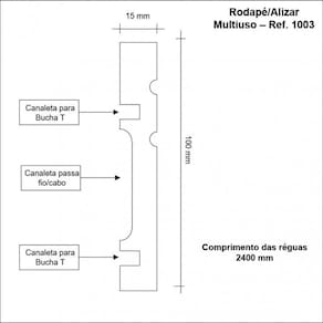 Rodapé revestido com melamina de alta resistência pronto para instalação, não necessita pintura. O Rodapé é desenvolvido em um material ecologicamente responsável e tecnicamente eficiente. O MDF é um padrão internacional de qualidade em ecologia e sustentabilidade, com inúmeras vantagens de aplicação. Sem empenamento, mostra-se um material que entrega um Rodapé final de excelência. Não descolore, tonalidade do produto não se altera, devido o revestimento melaminico ser composto de vernizes de alta resistência a riscos, pigmentos e resinas de alta qualidade, o que garante um produto de sem oscilação de cor, independente do ambiente onde se encontra. Acabamento: Liso Altura do Conjunto: 10 cm Ambiente: null Ambiente Principal: Sala de Estar Cor: Branco Cor Predominante: Branco Informação Complementar: 30x Rodapé de MDF 10cm x 15mm x 2,40m com Friso Resistente a Umidade 1003 Branco Altura: 10 Peso: 0.823