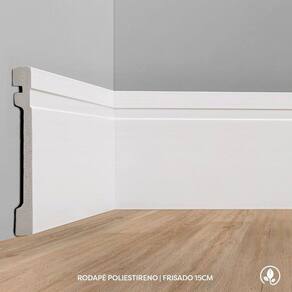 Kit Rodapé Poliestireno Frisado 8 Barras 15cm X 240cm Rende 19,20 Metros Eco Premium Ecomex - caixa com 8 Unidade - Branco.