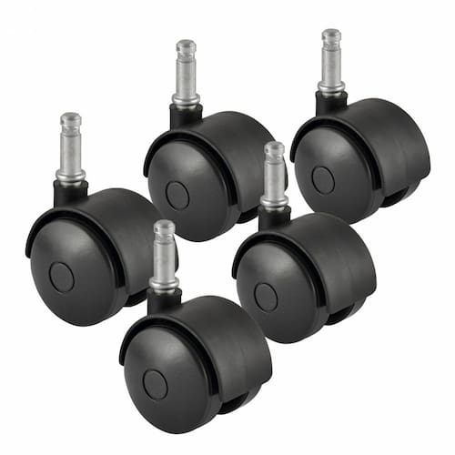 Kit Rodizio com roda 50mm em Poliamida preta Anti risco Haste lisa de 10mm Valor do kit 5 peças Diâmetro: 52mm Capacidade de Carga: 45 Kg por rodízio. Altura Total: 63mm Sugestões de Aplicação: Cadeiras para escritório. Recomenda-se a de todos os rodízios. Marca: Não Informado
