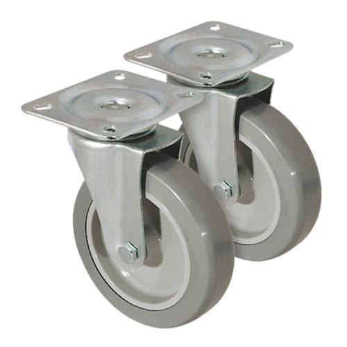 Rodizio industrial Roda da linha pesada Ø125mm Anti risco Valor do kit 2 peças Especificações Técnicas: Diâmetro: 120m Capacidade de Carga: 105 Kg Altura Total: 150mm Fixação: Chapa plana Sugestões de Aplicação: Mesas, armários para ferramentas, fornos, buffets, assadeiras, cozinhas industriais, carrinhos industriais, linha de refrigeração, equipamentos industriais, balcões frigoríficos, refrigeradores, expositores, gôndolas. Marca: Não Informado