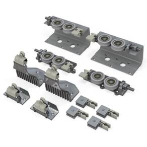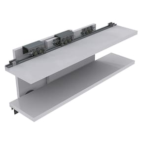 Kit rodízio ss150+2 para 2 folhas Sistema suspenso para móveis de grande porte, sustenta portas de até 150 kg. As portas deslizam externamente à caixa do móvel, proporcionando um total aproveitamento do espaço interno.