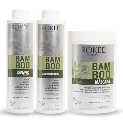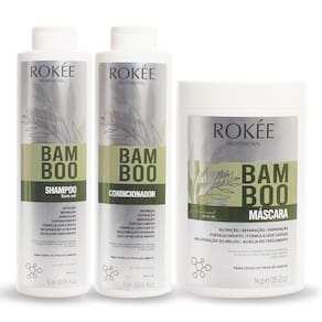 AMáscara Capilar BAMBOO ROKÉE Professional, possui em sua composição Extrato de Bamboo, Óleo de Coco, Manteiga de Manga e Proteínas do Milho e da Soja, rico em aminoácidos graxos com ação antioxidante. Sua fórmula leve proporciona emoliencia aos fios ao mesmo tempo que restaura, fortalece e hidrata a estrutura capilar, auxiliando em seu crescimento saudáveis dando volume e brilho. Indicado para todos os tipos de cabelo.