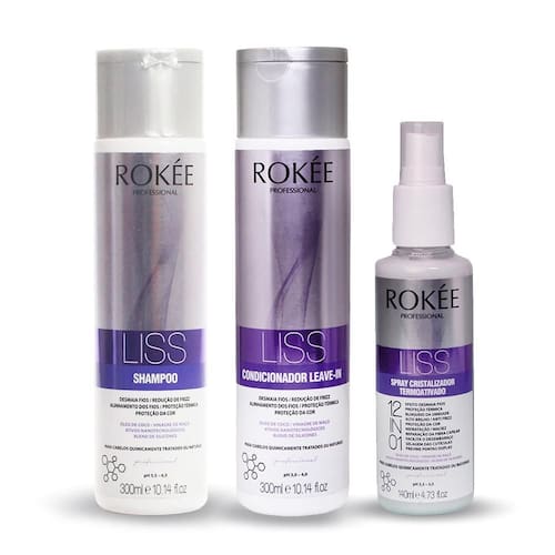OShampoo Liss ROKÉE Professional, enriquecido com Óleo de Coco, Blend de Silicines, Vinagre de Maça a Ativos Nanotecnológicos que blindam e hidratam, proporcionando nutrição e reparação dos cabelos, além de reduzir o volume e o frizz dando um efeito disciplinador e alisamento temporário do fios. Promove o aumento da massa capilar, proteção térmica da cor, deixando os cabelos macios e com brilho tridimensional.