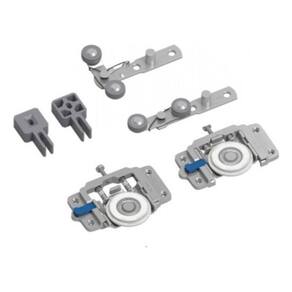 KIT COMPLETO DE SISTEMA PARA PORTAS DE CORRER / DESLIZAR COM SUSTENTAÇÃO NA BASE; SISTEMA DE MOLAS ANTIDESCARRILAMENTO, TRAVA DE LIBERAÇÃO DAS MOLAS E PARAFUSO COM REGULAGEM DE ALTURA. APLICAÇÃO SOBREPOSTA, FACILITANDO A INSTALAÇÃO. AS MEDIDAS DA ROLDANAS ESTÃO NA FOTO.