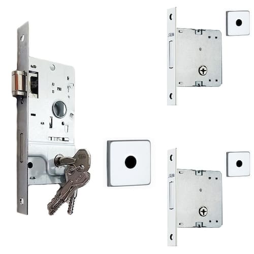 O kit acompanha uma Fechadura 800 Pivotante Rolete com Regulagem Tetra Chave, duas Travas de Segurança 1004 Tetra Chave, todas com o mesmo segredo. Isso significa que você só precisa de uma chave para abrir as três fechaduras, proporcionando mais comodidade e conveniência.