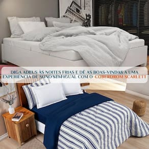 Eleve o conforto e o estilo do seu quarto com o Kit Roupa de Cama Edredom Super King Scarlett. Feito em 100% algodão e com um design estampado em dupla face, este kit oferece o máximo de conforto e elegância para suas noites de sono.