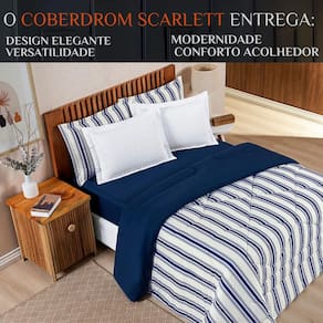 Eleve o conforto e o estilo do seu quarto com o Kit Roupa de Cama Edredom Super King Scarlett. Feito em 100% algodão e com um design estampado em dupla face, este kit oferece o máximo de conforto e elegância para suas noites de sono.