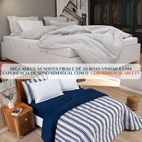 Kit Roupa Cama Edredom Super King Scarlett 100% Algodao Dupla Face Estampado MARIN Cores: Azul