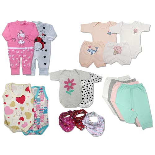 Kit Roupa de Bebê Menina 17 Peças Barato Lindo e EstilosoElaboramos um Kit, pensando em facilitar a organização da mala de nossos bebês.O ?Kit Roupa de Bebê 17 Peças Barato Lindo e Estiloso é Confortável, macio e durável, com lindas estampas. Deixando o dia a dia das mamães mais tranquilo e organizado.CONTÉM:2 Macacão Suedine Taylor2 Body estampado Manga Curta4 Mijão Malha Liso3 Bandanas2 Body Regata2 Conjunto Body shortsTOTAL: 17 PEÇASATENÇÃO!>>>>>PODE HAVER DIFERENÇA DE 2 CM PARA MAIS OU PARA MENOS NAS MEDIDAS DO PRODUTO>>>>>NÃO TEMOS KITS UNISSEX>>>>>FOTO ILUSTRATIVA>>>>>NÃO É PERMITIDO ESCOLHA DE ESTAMPAS/CORES, VAI DE ACORDO COM ESTOQUE>>>>> PEÇAS QUE POSSUEM ALGODÃO EM SUA COMPOSIÇÃO, PODEM ENCOLHER EM MÉDIA ATÉ 2 CENTÍMETROS NA PRIMEIRA LAVAGEMMEDIDAS:MACACÃO SUEDINETamanho P | COMPRIMENTO: 45cm | CINTURA: 23cm | MANGA: 15cmTamanho M| COMPRIMENTO: 47cm | CINTURA: 25cm | MANGA: 17cmTamanho G | COMPRIMENTO: 49cm | CINTURA: 27cm| MANGA: 19cmBODYTamanho P | COMPRIMENTO: 37cm | CINTURA: 19cmTamanho M | COMPRIMENTO: 39cm | CINTURA: 21cmTamanho G | COMPRIMENTO: 41cm | CINTURA: 23cmMIJÃOTamanho P | COMPRIMENTO: 41cm | CINTURA: 16cmTamanho M | COMPRIMENTO: 43cm | CINTURA: 18cmTamanho G | COMPRIMENTO: 45cm | CINTURA: 20cmBODY REGATATAM P: COMPRIMENTO: 32cm | CINTURA: 20cmTAM M: COMPRIMENTO: 34cm | CINTURA: 22cmTAM G: COMPRIMENTO: 36cm | CINTURA: 24cmSHORTTAM P: COMPRIMENTO: 21cm | CINTURA: 20cmTAM M: COMPRIMENTO: 23cm | CINTURA: 22cmTAM G: COMPRIMENTO: 25cm | CINTURA: 24cmCuidados:- Lavar com cores similares- Não deixar de molho- Não usar alvejante- Não utilizar secadoraEnvio:- O produto será enviado em até 24hs úteis- Garantimos a entrega do produto ou seu dinheiro de volta- Em caso de troca ou devolução as despesas com envio e reenvio serão por conta do comprador Ean: 7906879978712