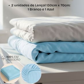 2 Lençois de Malha com Elástico Bublim Baby (70 cm x 130 cm x 15 cm) 3 Unidades de Cueiro 100% Algodão Incomfral (100 cm x 80 cm) 1 Protetor de Colchão Impermeável BF Colchões (130 cm x 70 cm x 12 cm)