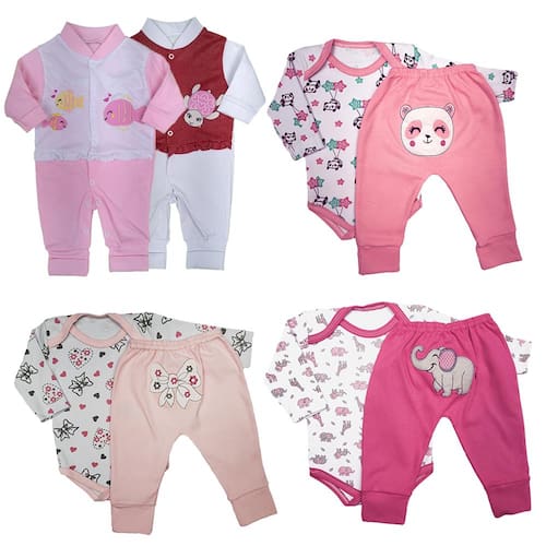 Kit Roupas de Bebê 8 Peças Conjuntos e Macacão Longo Suedine